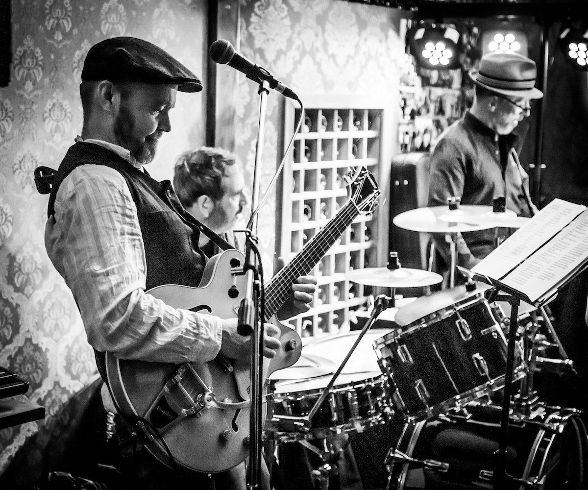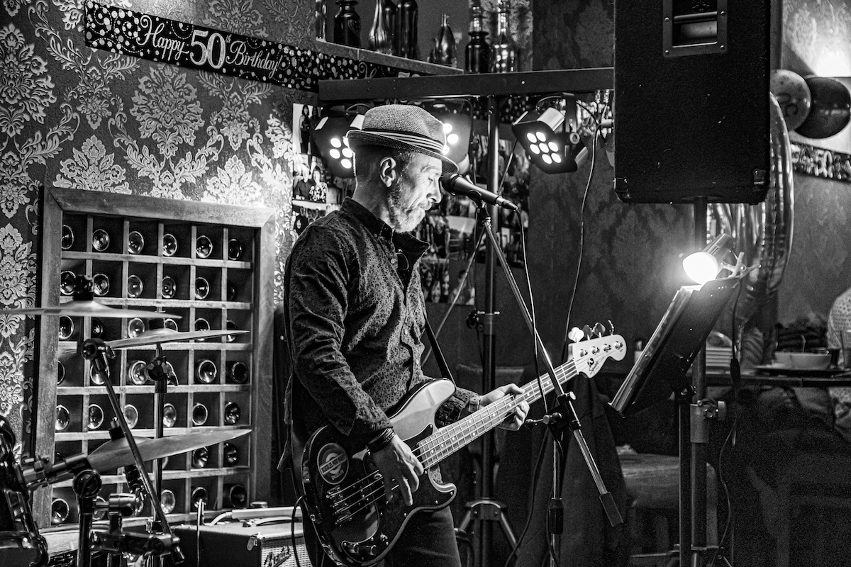 Gerry Kavanagh has fine set of pipes, and plays a mean bass guitar. Gerry has been in bands most of his life, and is the sound of Cool Hand Luke. He also has a fine eye for a hat. On a good day, he might be convinced to play Galway Girl (but only on a good day…).